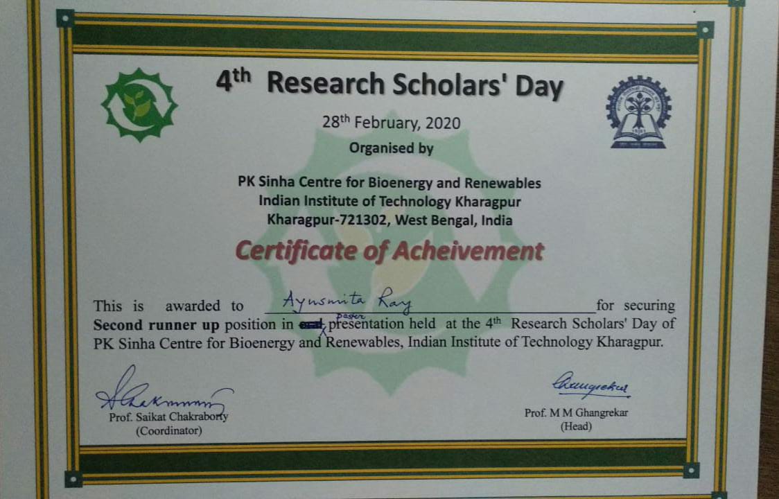 I started my research work on the development of the biomethanation process in 1980. I successfully conducted the Pilot Plant studies on the biomethanation process at IIT Delhi; M/s. Daurula Sugar Works Ltd, Daurula, UP; M/s. Citurgia Biochemicals Ltd., Surat. Biohydrogen research work was initiated in 1999. We have made commendable contributions towards development of a commercially competitive and environmentally benign bioprocess began with the isolation and characterization of high-yielding hydrogen producing bacterial strain Enterobacter cloacae IIT-BT 08, which, as of today, is known to be the highest producer of hydrogen by fermentation. Also established that Fe-H2se from E. cloacae is cytoplasmic, monomeric, metalloenzyme with molecular weight of 51 kDa. This group worked on the development of a novel two-stage fermentation process (dark-fermentation followed by photofermentation) with a view towards amelioration of hydrogen productivity. They are also involved in Pilot Plant studies for the commercial exploitation of the process using cane molasses, rice mill wastes, distilery effluent, sewage sludge, etc. The aim was to synchronize the bioremediation of wastewater with clean energy generation. They have two Indian Patents , more than 165 publication in the peer reviewed journals and 38 book chapters. I received Akira Mitsui award of International Association of Hydrogen Energy at WHEC 2008 at Brisbane, Australia. This was followed by Malaviya Memmorial award 3013 of Biological Research Society of India at Jawaharlal Nehru University, New Delhi. Recently, our research group developed biohythane process for the maximization of gaseous energy recovery from the organic wastes. 10,000 L Biohydrogen Pilot Plant was designed, fabricated and commissioned at IIT Kharagpur. Technology License agreement of the process has already transferred to M/s. Dhampur Sugar Mills Ltd., Dhampur, UP, India. We successfully demonstrated the paper based microbial fuel cell which may be explored for the development of biosensors. Air lift photobioreactor was found suitable for the sequestration of CO2 as compared to others like flat plate panel reactor, bubble column reactor etc. I have several sponsored research projects from International (National Science Foundation, USA; Norwegian Foreign Ministry, Norway; Danish Research Council, Denmark, DAAD, Germany) and National (Ministry of New and Renewable Energy Sources; Department of Science and Technology; Department of Biotechnology; Defence and Research Development Organization) funding agencies.